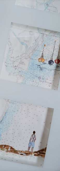 Aquarelle sur ancienne carte marine